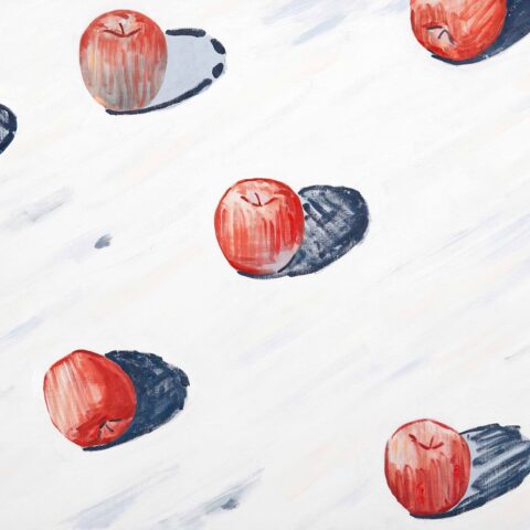 Sa peinture nous interroge sur le thème fondamental du peintre, et plus précisément, sur ses obsessions pour le motif à travers l’histoire de l’art. Ses premières oeuvres ont pour sujet la convocation de références universelles de l’art telles Lucrèce de Lucas Cranach, La Grande Odalisque de Ingres, ou encore La Raie de Chardin : toiles emblématiques auxquelles il suggère une réinterprétation contemporaine afin de mieux cerner son propre apport à la peinture. Plus récemment, ses recherches le conduisent à traiter un objet simple, d’apparence anodine : la pomme. Ce motif, le plus naturellement associé dans l’inconscient collectif à l’exercice de la nature morte, interroge toute l’histoire de la peinture moderne de Cézanne à Magritte.