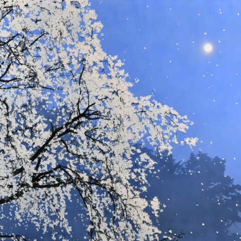 Ses œuvres attestent d’un don du dessin empli d’une sentimentalité lyrique. Le plus souvent, elles illustrent cet environnement naturel dévoilé sous la forme d’une illusion, ou bien révèle davantage son attachement à une iconographie proprement asiatique. Ainsi, il est possible de voir surgir de ses tableaux des figures émanant d’un bestiaire fantastique, à l’instar du dragon, créature emblématique de la culture japonaise incarnant l’immortalité. De façon systématique, Naoya Egawa cherche à retranscrire le ravissement que génère la nature et la force de ses éléments. A la manière des Impressionnistes, il se saisit d’une vision qu’il décline et distille selon le milieu. C’est ainsi qu’il se consacre à dessiner des arbres, leurs branches, la couleur de chaque feuille frappée par la lumière. Combinant ce souci du détail à une palette réduite, Egawa compose avec ce qui nous entoure et nous plonge dans un monde onirique, un monde blanc et silencieux.