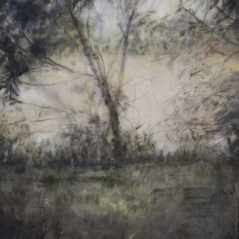 Face à cette exactitude, Pierre Roy-Camille, lui, inscrit le paysage dans une mémoire stratifiée. La forêt y est jungle. L’empreinte constitue le fondement de son langage, des traces indélébiles qui imprègnent la toile comme pour mieux capturer l’évanescence même du vivant. Entre délicatesse et puissance, il façonne une iconographie onirique, où chaque trace, chaque superposition de pigments révèle des souvenirs anciens comme gravés dans l’épaisseur du temps.